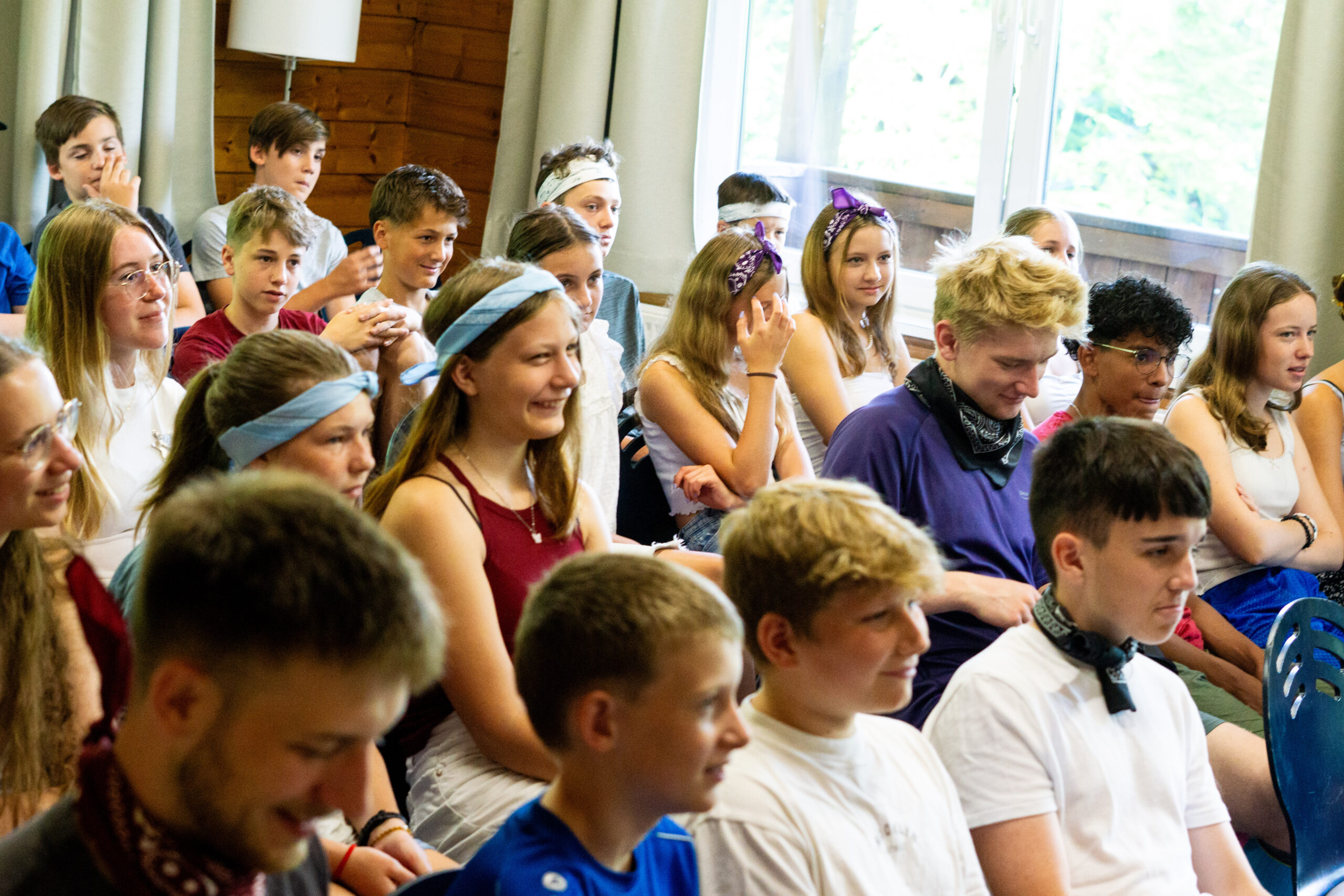 Unser Abendprogramm ist speziell für Camper im Teenie-Alter gestaltet. Es ist kurz, energiegeladen und voller Musik, Geschichten und Botschaften, die einen sicheren und einladenden Raum schaffen, in dem die Camper etwas über Gott lernen können.